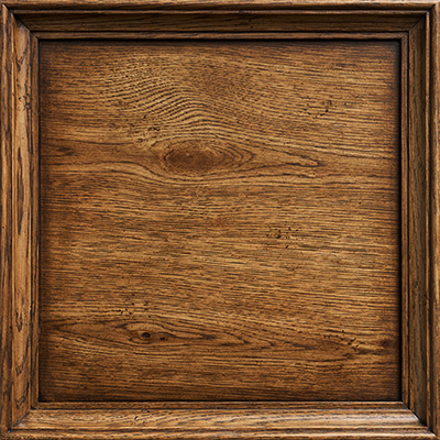 A warm putty stain enhanced with a light umber dry brush that gives the finish a slight two-tone effect.