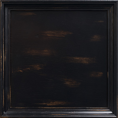A rich rubbed-through black finish that highlights the underlying wood tones with a lustrous satin-like patina.